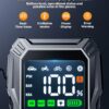 • ALL-IN-ONE EMERGENCY KIT. This compact and portable device combines a jump starter, a high-pressure air compressor, and a bright LED light into one essential unit. Whether your car battery’s gone flat, your tyres need a quick top-up, or you’re facing a roadside repair in the dark, this tool has you covered. With its ergonomic handle, this car jump starter is easy to carry and store in your car boot. It’s the perfect companion for road trips, daily commutes, or emergency situations.