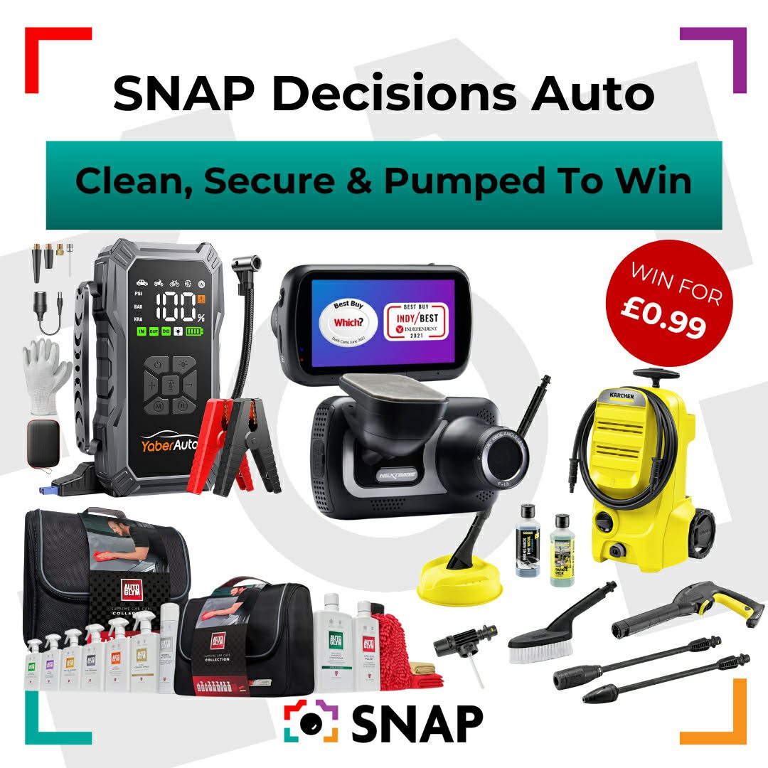 Win our Snap Decisions Auto competition and you can pick from the 3 options below which prize you prefer.