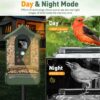 【Day and Night】The night vision function of the smart bird feeder with camera allow you to keep watching your feathered friends even after the sun goes down. The camera’s IR light auto-on as the environment changes. With a built-in 940NM IR light providing clear visibility in low light conditions, it allows you to take highest quality photos and videos of your birds day or night. Plus the 1000mAh rechargeable battery and low power consumption design so you can keep watching your birds .