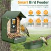 【1080P HD Video/Photo】Smart bird feeder with camera is the flawless solution for bird lovers who want to get a closer look at their feathered friends. Equipped with a 100° wide angle and a 1080P HD camera, this innovative bird feeder captures stunning photos and videos of birds in action. With the highest quality video and photo capabilities, you can use it as an educational tool to teach kids about different bird species and their behaviors.