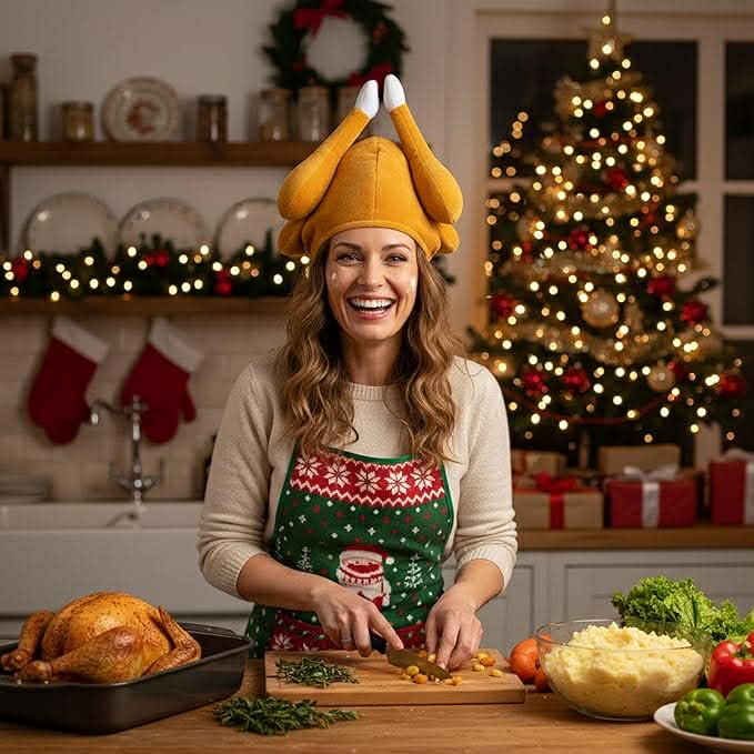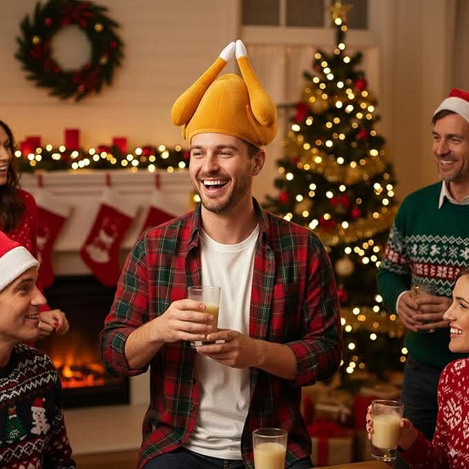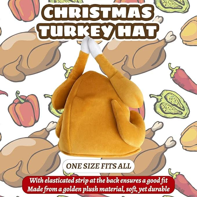 One Size Christmas Hat, Funny Festive Turkey Hat for Christmas Dinner, Office Parties and Secret Santa Gifts