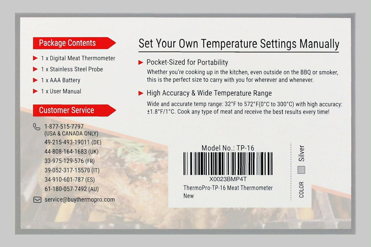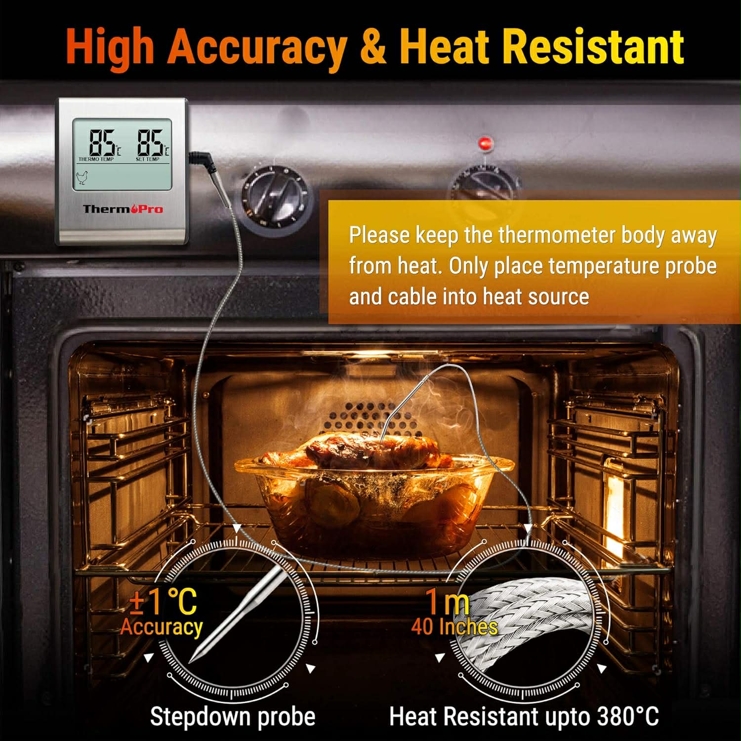 ThermoPro TP16 Digital Kitchen Meat Thermometer with Stainless Steel Long Food Temperature Probe for Liquids, Oven, Smoker, BBQ, Candy, Oil, Deep Frying Cooking Thermometer with Timer Alarm.