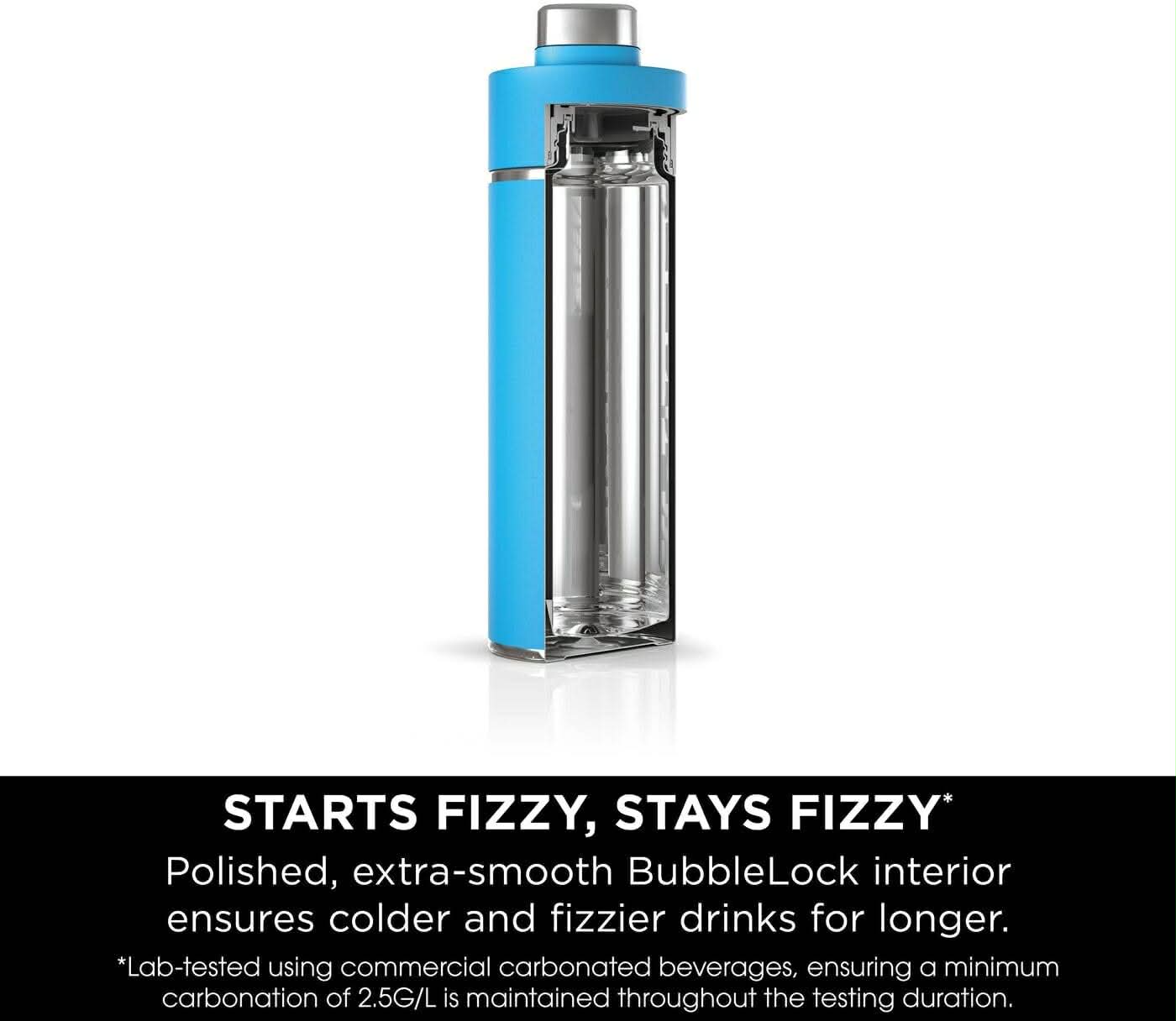 Starts fizzy, stays fizzy* – smooth interior retains bubbles for lasting fizz