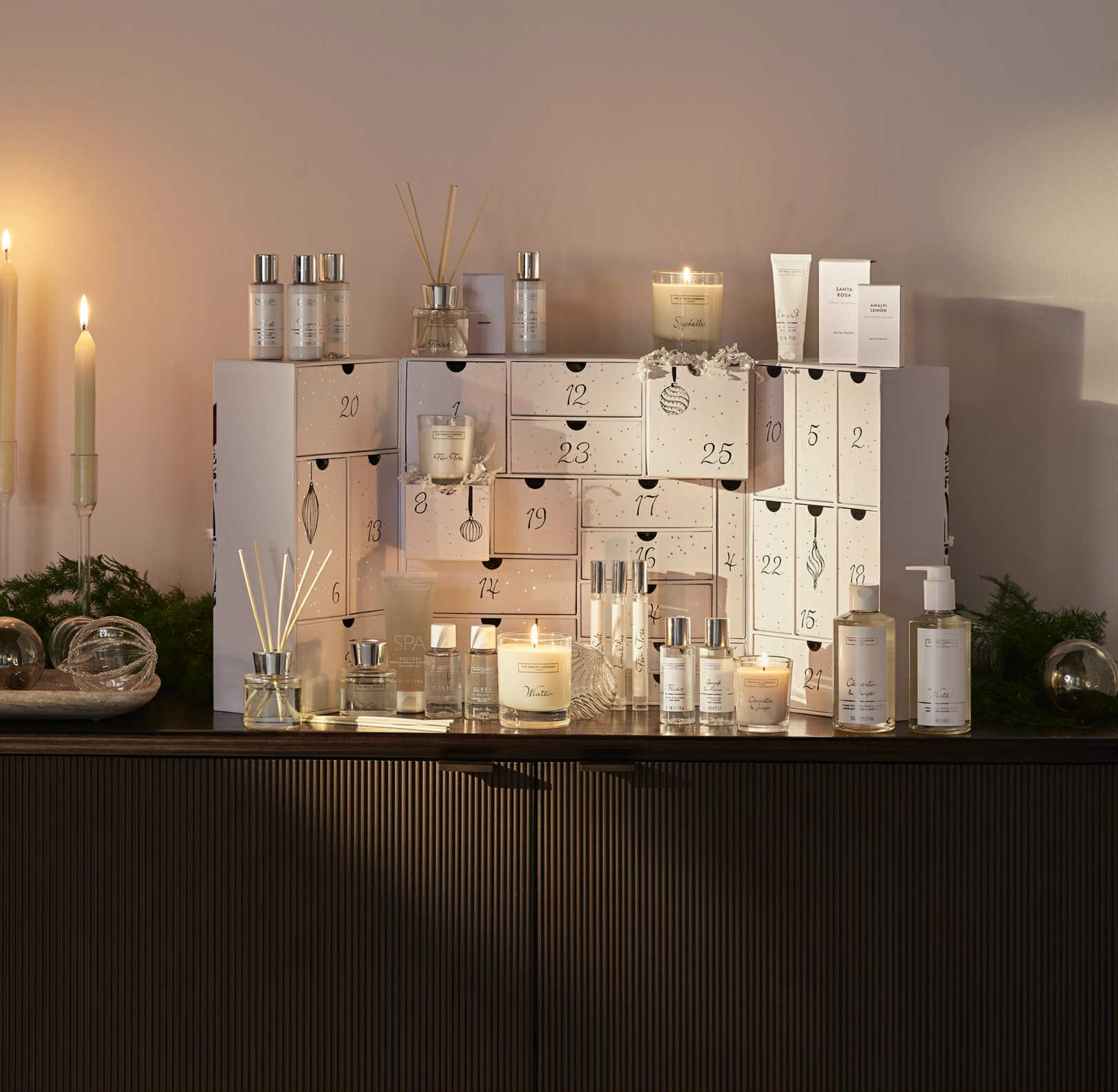 A 2025 Advent Calendar to provide a little daily indulgence in the run-up to Christmas. Each of the pull-out drawers containing one of their favourite seasonal scents or wellness treats. And yes – that’s 25, not 24 (we think Christmas Day deserves a present, too). Gift, share or save it for yourself. Plus, this year you’ll discover more full-sized products than ever. Want a sneak peek at what’s in this year’s calendar? DON’T scroll any further if you want it to be a surprise.