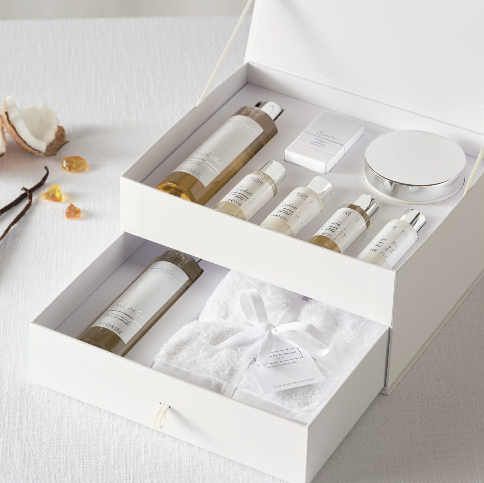 Like a warm Indian Ocean breeze, our much-loved scent of soothing Seychelles combines notes of evocative bergamot, bright orange and fresh coconut, with a hint of green jasmine, warming amber and buttery vanilla.